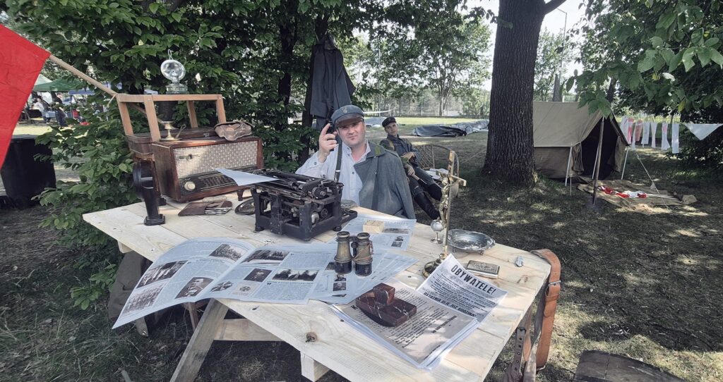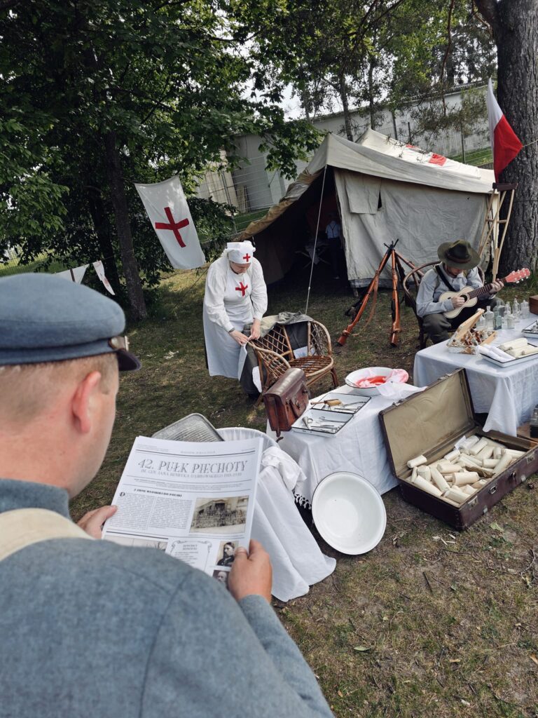 W cieniu drzew na stadionie miejskim w Białymstoku zamieniliśmy rodzinny piknik w historyczną podróż do czasów wojny polsko‑bolszewickiej. Rekonstruktorzy GRH „Batalista” odtworzyli obozowisko Wojska Polskiego z okresu wojny Polsko – Bolszewickie