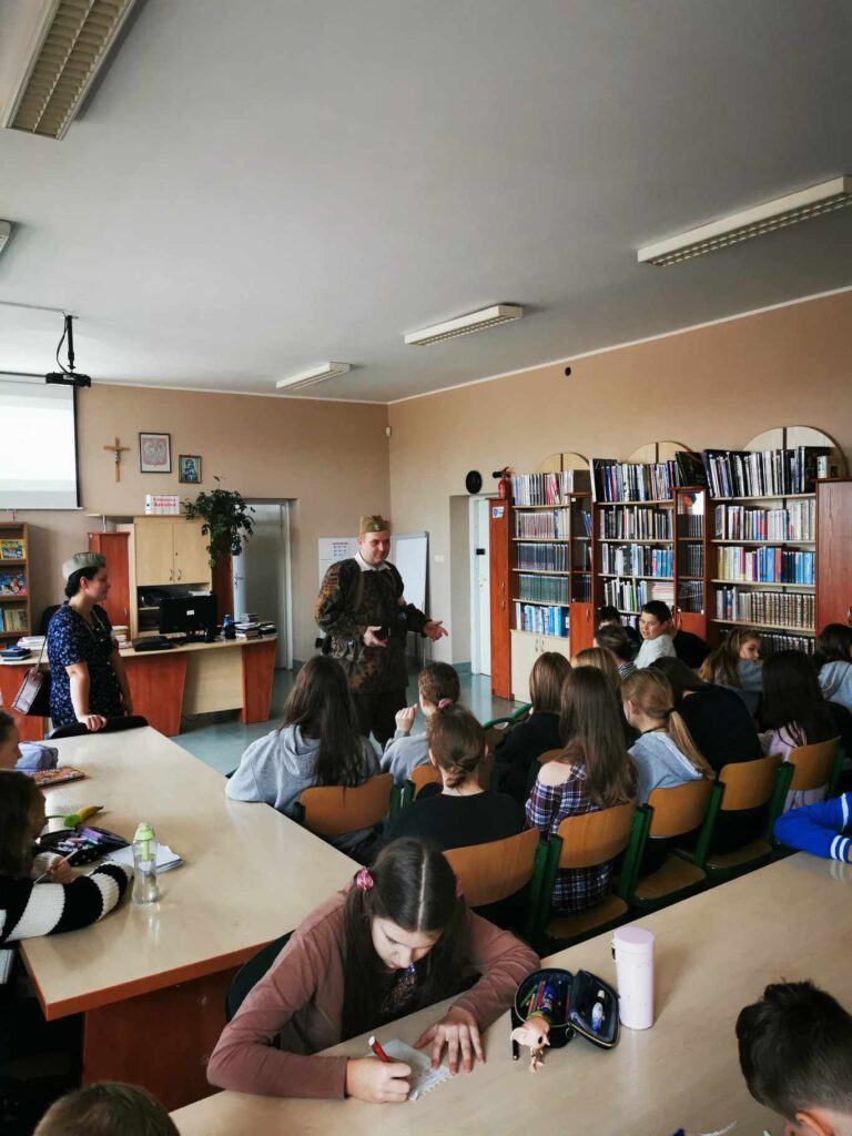 Podczas spotkania z młodzieżą Nasza Grupa Rekonstrukcji Historycznej „Batalista” pokazała, jak wyglądało codzienne życie żołnierzy – bez gablot i barier, za to z możliwością „dotknięcia historii”.